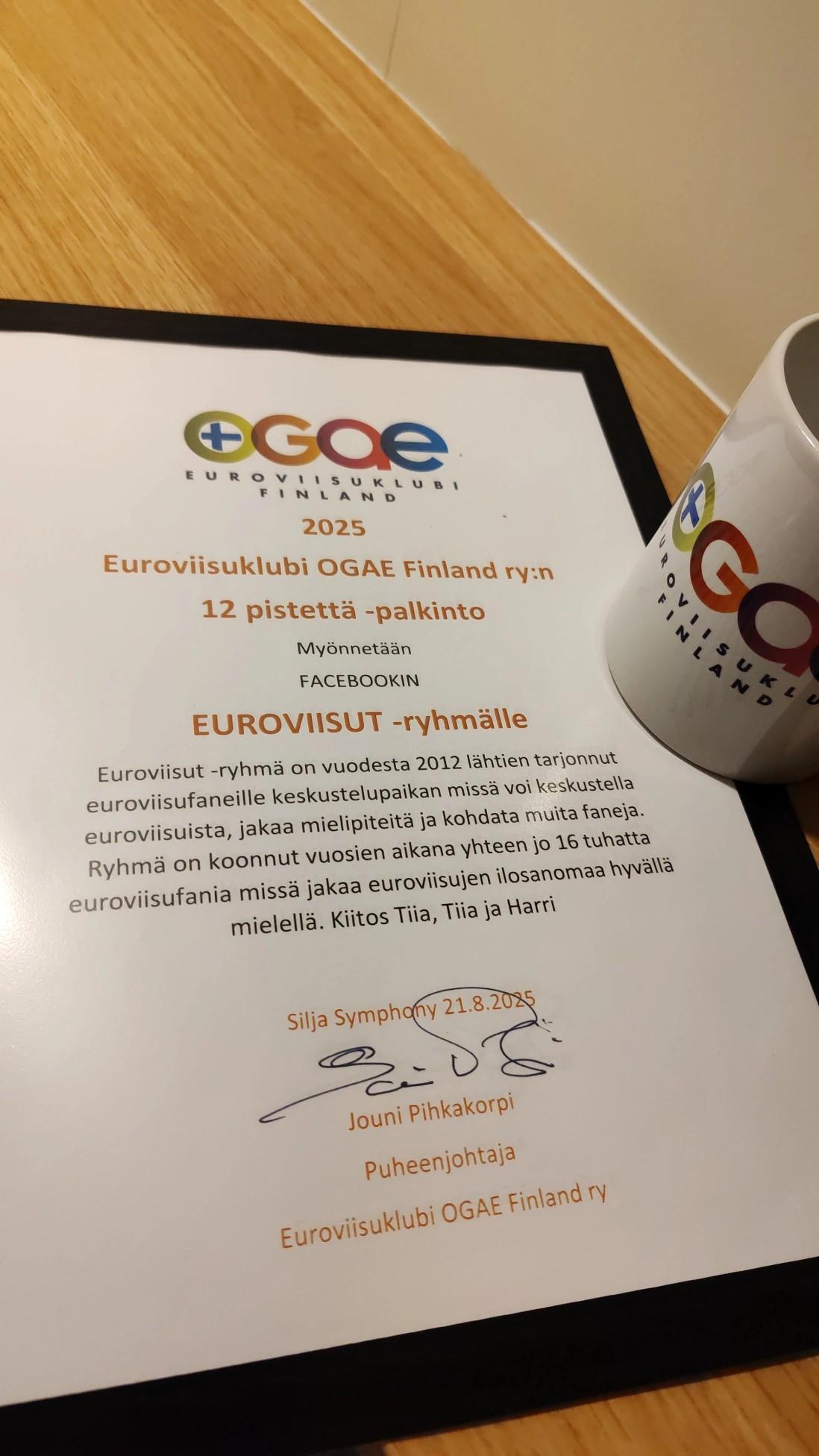 Euroviisuklubi OGAE Finland 12 -pistettä palkinto / - 12-poäng pris /- 12-Point prize